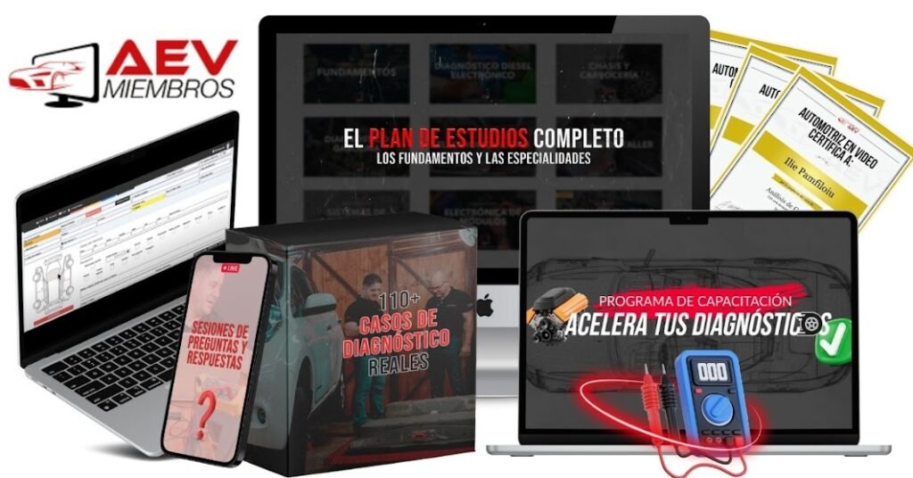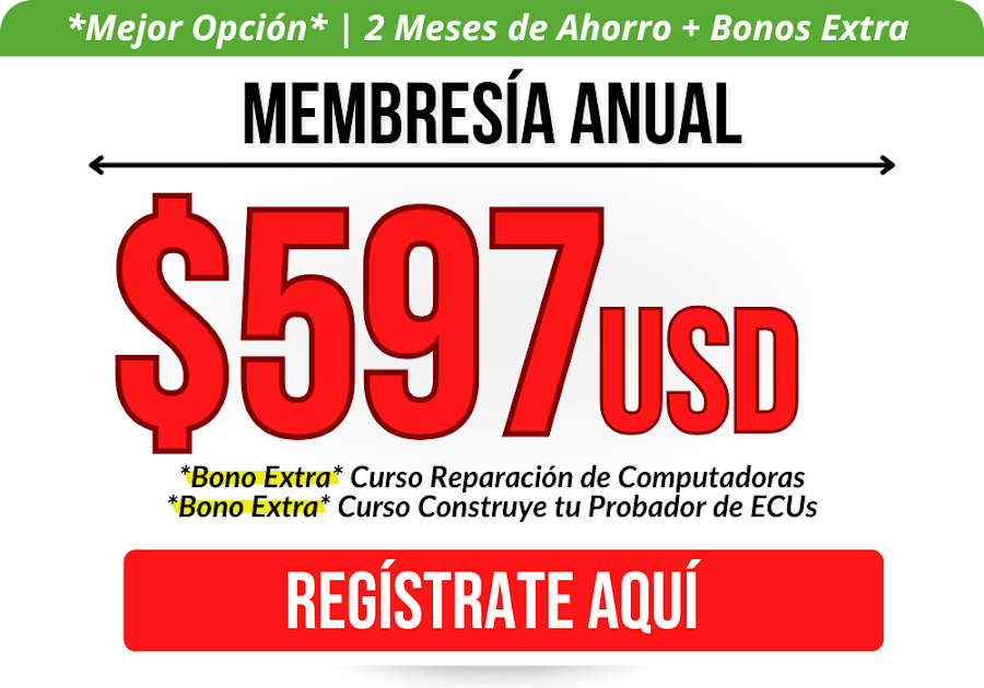 Tienes acceso a los siguientes cursos: Paquete de Sobrevivencia, Curso Profesional de Osciloscopio, Curso Sistemas HEUI, Curso Bobinas DIS-COP, Curso Modulos de Encendido, Curso Redes Multiplexadas (+12 cursos), Curso Common Rail Bosch, Curso Common Rail Denso, Curso Common Rail Delphi, Curso Common Rail Siemens, Curso Etapa 5 Voltios en las ECU’s, Curso Oscilograma Presión, Curso Electricidad y Electrónica, Curso Amplificadores Operacionales, Curso Pinza Amperimétrica, Curso de Vehículos Híbridos, Curso Sistemas OBDII, Curso de Inyección Electrónica, Curso de Sistemas de Encendido, Curso de Escáner Automotriz.